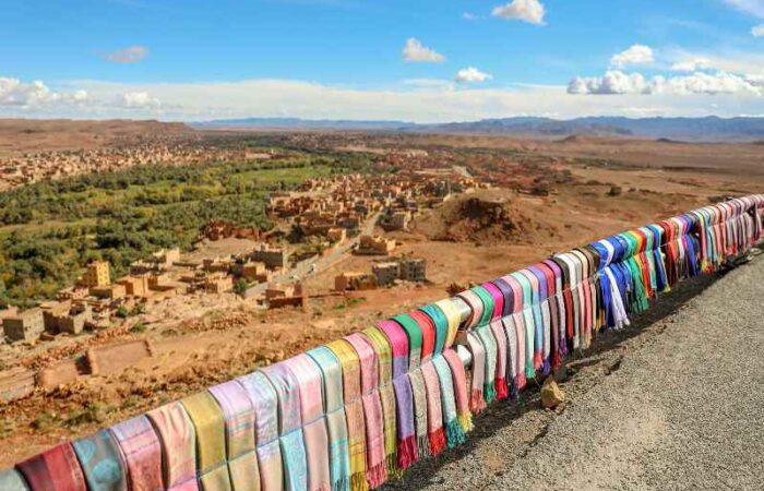 Following that, we’ll visit Taourirt Kasbah and the famous film studios of Ouarzazate, also known as the “Hollywood of Africa” due to its significance in the film industry. Following a delicious lunch, we’ll travel to Dades Gorges via Skoura, famous for its 1000 Kasbahs we’ll make a visit to Ameridile Kasbah, one of the historic kasbahs in the region. Afterward, continue on via Kalaat M’gouna, also known as the Rose City. Additionally, we’ll visit local cooperatives for roses so as to learn more about roses producs (optional stop).