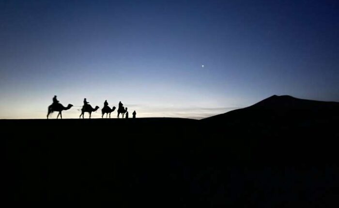 Finally, we arrive at the Merzouga desert, where your camel guide will be waiting for you to go on a camel ride through the golden dunes of Erg Chebbi, taking in alluring desert landscapes. We ‘ll then stop for a sunset view then continue to your desert camp where you’ll spend the night in the middle of the desert.