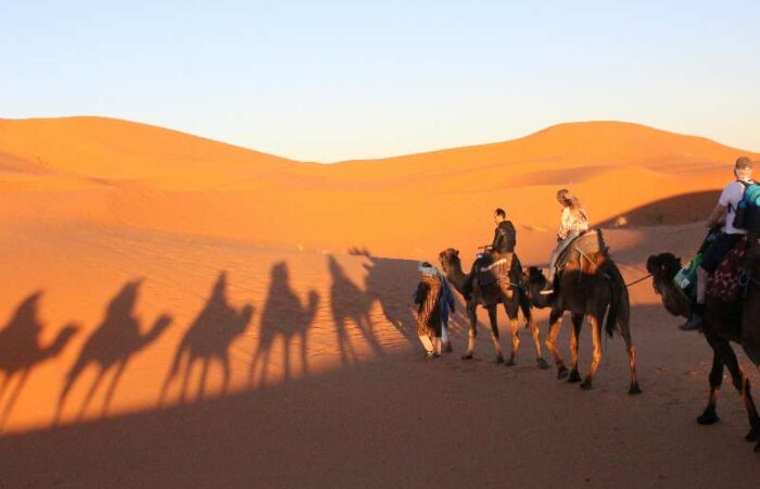 Following that, uncover Ifrane, often known as ”Morocco’s Little Switzerland,” and then visit the Cedar Forest, Morocco’s largest forest, to take in the magnificent landscapes the city has to offer. Once you reach Merzouga Desert, you’ll meet your camel guide for a memorable camel ride over the scenic dunes of Merzouga, and spend an unforgettable night in the middle of the desert.
